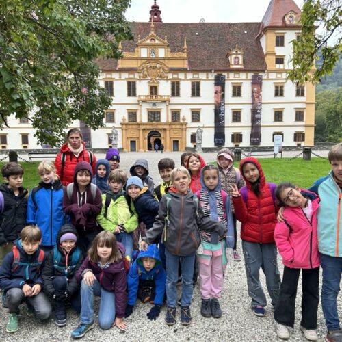 Die Kinder der 3a und 3b Klasse besuchten das Schloss Eggenberg und die Jubiläumsausstellung zum 400.sten Jahrestag des Schlosses. Alle waren begeistert von der imposanten Schau und vor allem von der vergoldeten Kutsche.