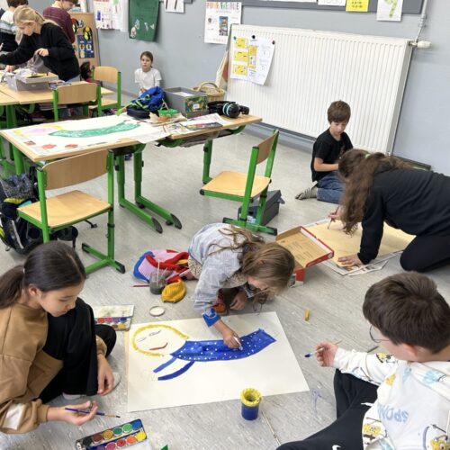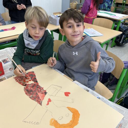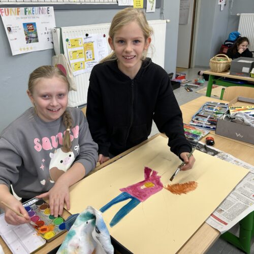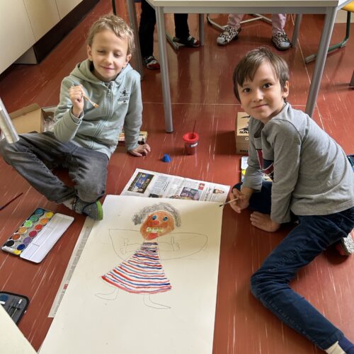 Letzte Woche führten die 3a und 3b ein weihnachtliches Malprojekt zu dem Buch „Engel für alle Fälle“ durch. In Partnerarbeit entstanden so ein Quatschengel, ein Osterengel, ein Mutengel und viele andere Engel mehr.